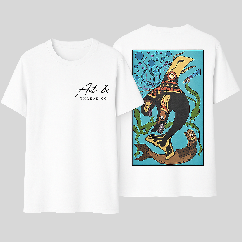 Jason Conner is a bold visual storyteller from Nanaimo, British Columbia, whose work celebrates the region’s rich Indigenous heritage and community spirit. Drawing inspiration from local culture, natural landscapes, and ancestral traditions, Jason’s art fuses surrealism with vibrant, expressive linework to honor stories passed through generations. His designs for Art & Thread Co. transform everyday wear into meaningful tributes—allowing collectors to showcase originality, cultural pride, and depth with every shirt. Each piece reflects Jason’s commitment to accessible, wearable creativity rooted in respect for heritage and community connection.